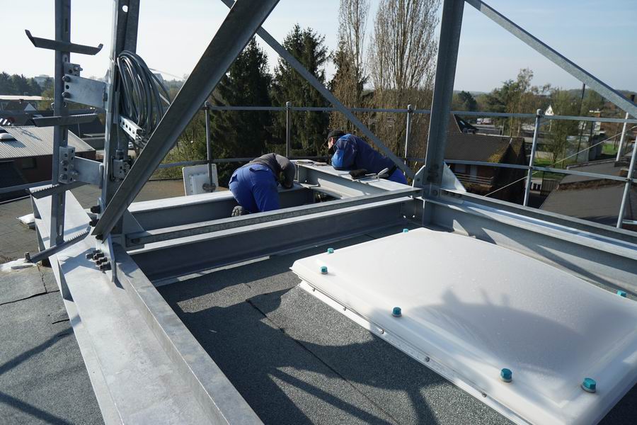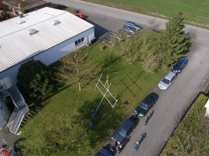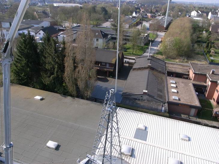 hier die ersten Bilder vom der 2 tätigen Aufbau vom Gittermast auf dem Silodach.